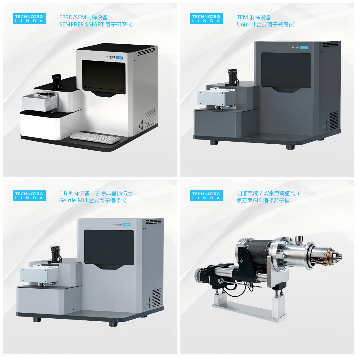 Technoorg Linda 系列离子研磨仪、离子减薄仪和离子精修仪,是 SEM / TEM / XTEM / FIB 样品制备的有力工具。该系列产品采用离子束技术,可对样品进行快速研磨、表面精细加工以及最终抛光等。