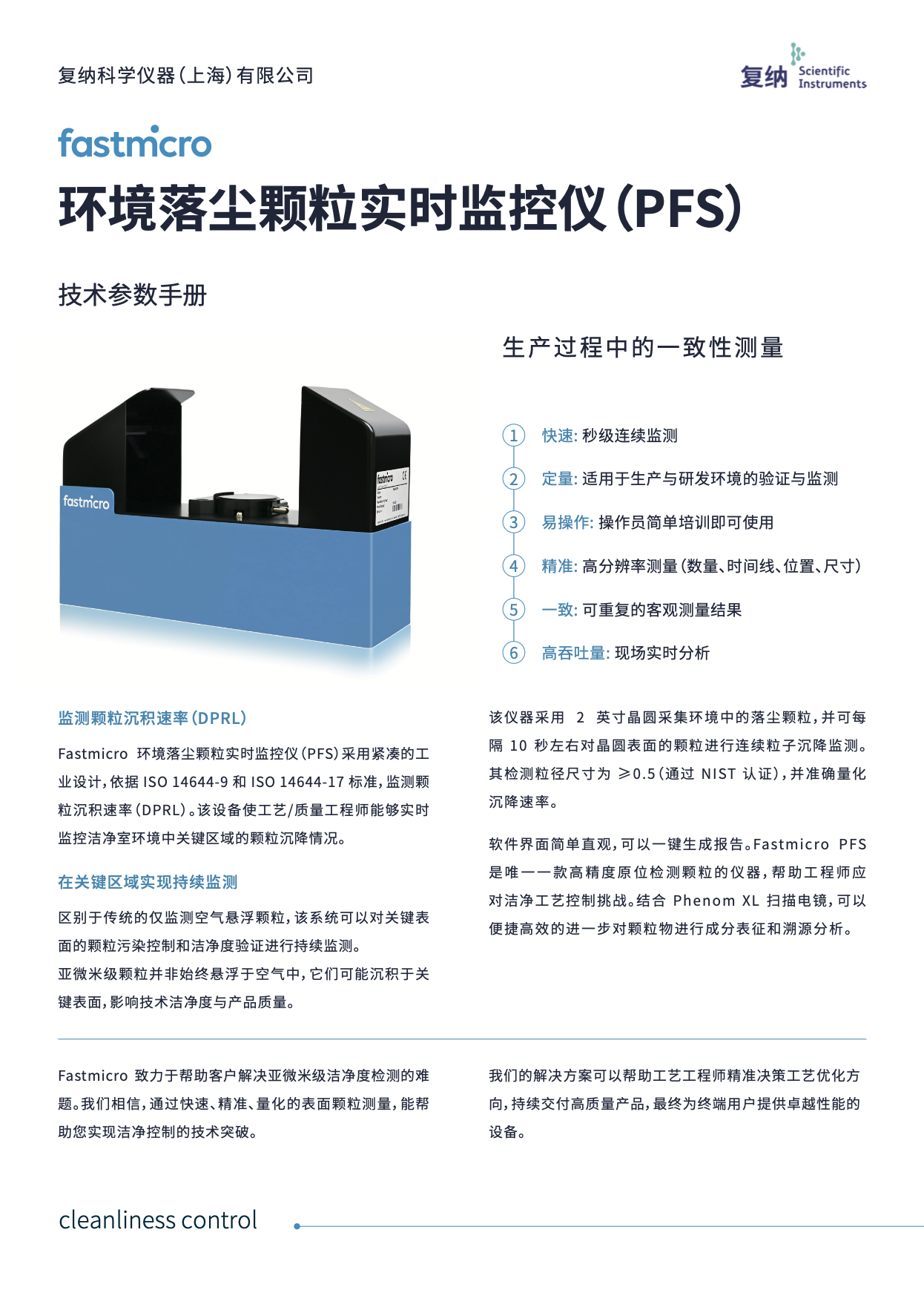 Fastmicro 环境落尘颗粒实时监控仪,专为洁净室颗粒沉积速率测量而研发,支持秒级间隔的数据采集,精准测量 0.5 um 以上颗粒。结合直观易用的软件系统,帮助客户实现从单纯空气监测向表面洁净度监测的跨越式升级,为工艺流程优化和洁净度持续改进提供科学依据。