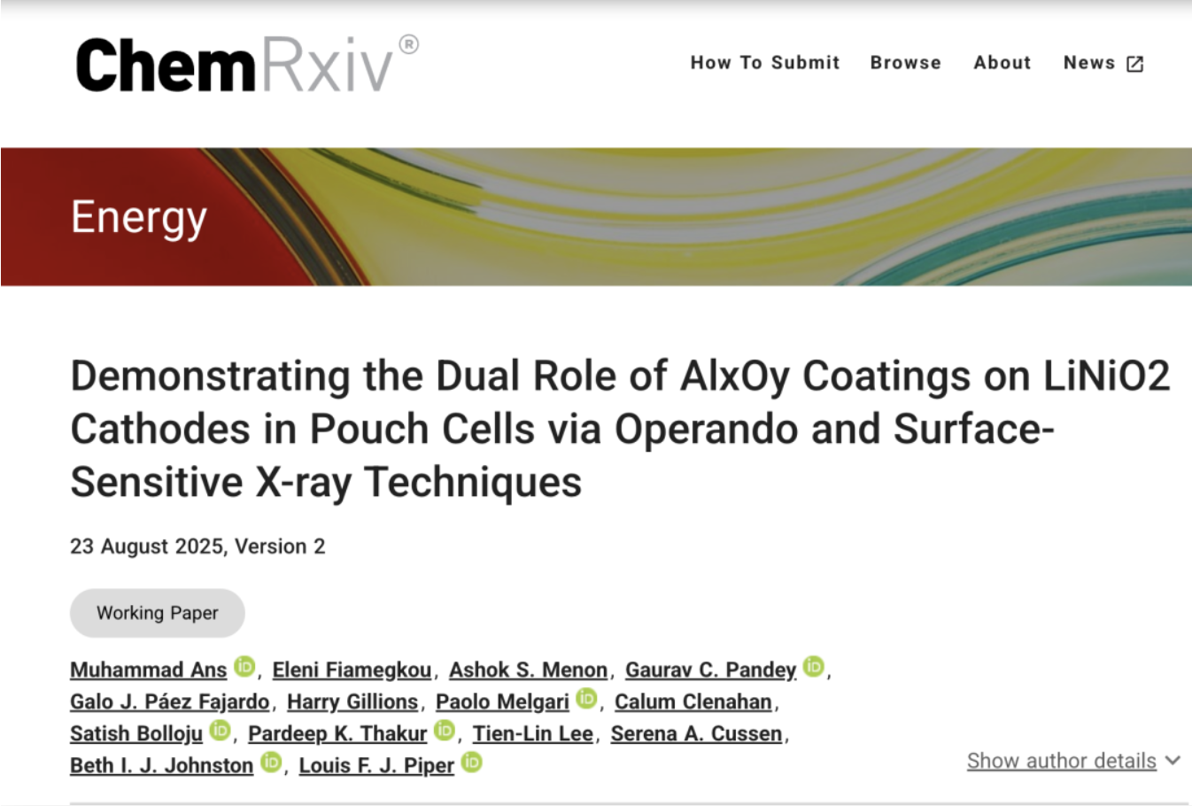 这篇文献由英国华威大学 WMG 电池材料团队牵头,联合英国国家电池研究平台 Faraday Institution、谢菲尔德大学材料系、爱尔兰都柏林大学化学院,以及英国国家同步辐射光源 Diamond Light Source 的科研人员共同完成。整体团队在高镍正极材料、界面涂层、电池工程化(尤其是 pouch cell 构建与测试)及先进同步辐射表征(operando XRD、XAS、表面敏感 XPS/HAXPES)方面具有国际领先优势,属于典型的“材料化学 + 电池工程 + 同步辐射技术”跨领域合作团队,为高镍正极界面机制研究提供了强有力的实验与技术支撑。