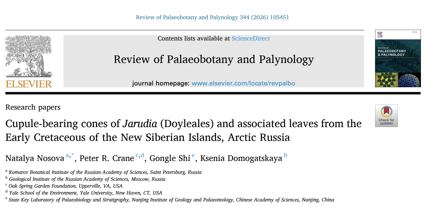 发表文章:Cupule-bearing cones of Jarudia (Doyleales) and associated leaves from theEarly Cretaceous of the New Siberian Islands, Arctic Russia