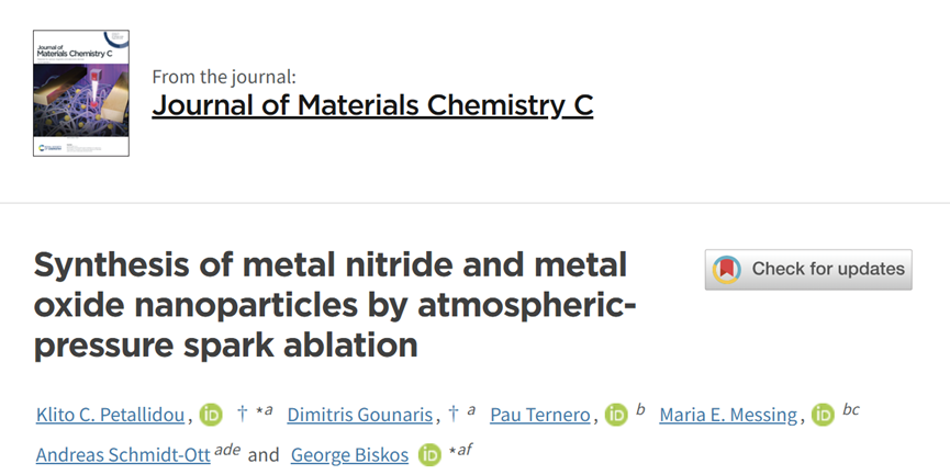 发表文章:Synthesis of metal nitride and metal oxide nanoparticles by atmospheric-pressure spark ablation