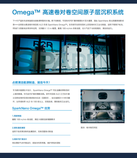 全球首个高速卷对卷空间原子层沉积 (ALD) 系统,可实现柔性薄膜卷材的工业化生产,产品范围涵盖锂离子电池到钙钛矿太阳能电池等